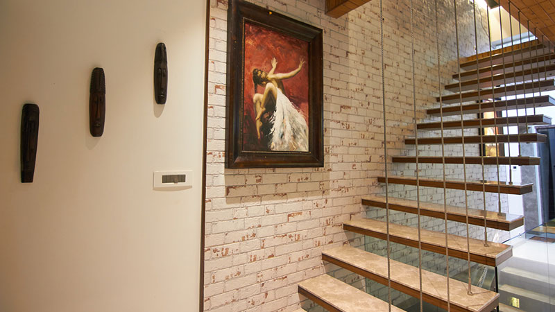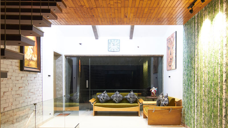There’s an artificial waterfall along with a barbecue deck and a sitting area. Step down, and there’s a spacious lawn along with a vegetable garden from where you may pick and choose your veggies to prepare your own meals. Fancy a dip in the pool?
